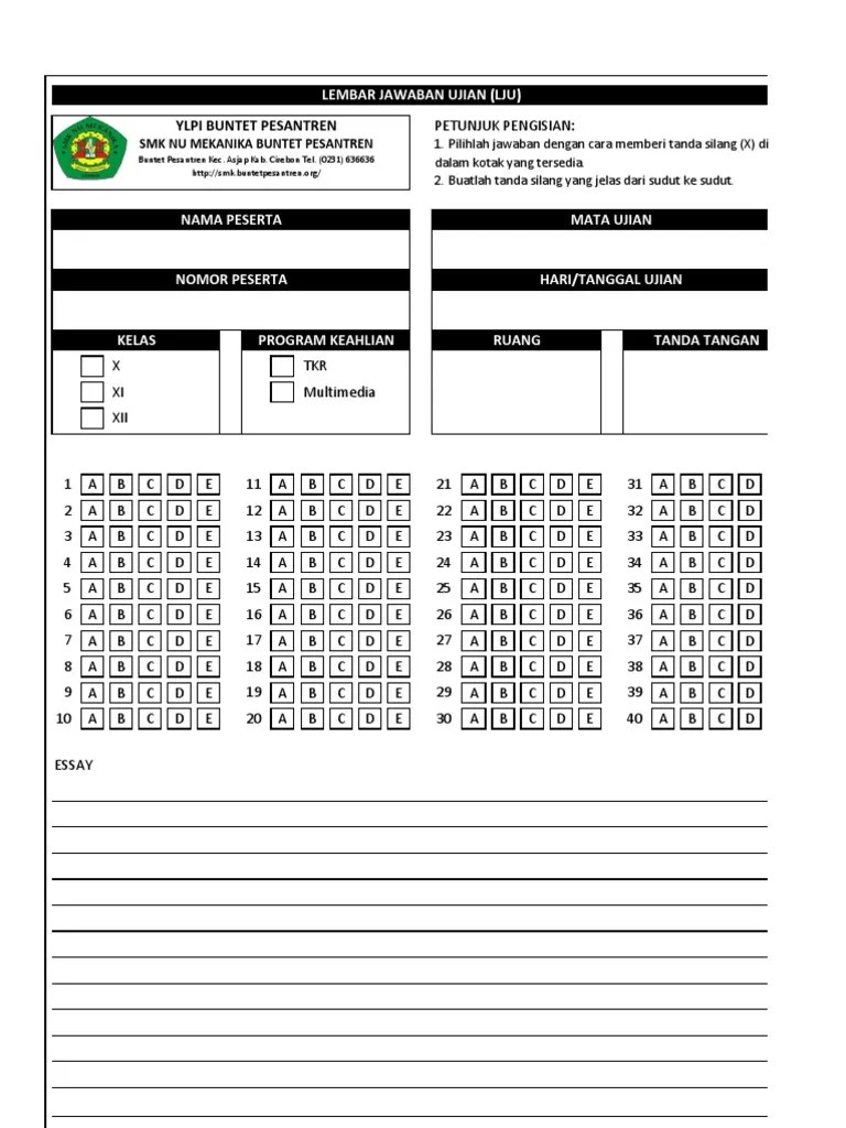 Oct 07 2020 contoh lembar jawaban pilihan ganda dan essay sd. lembar jawaban lembar jawaban komputer komputer 2. contoh soal essay dan uraian ipa smp mts mid semester genap. _____ n a a b. Lainnya terkait contoh soal esai bahasa indonesia dan jawabannya dibawah ini.